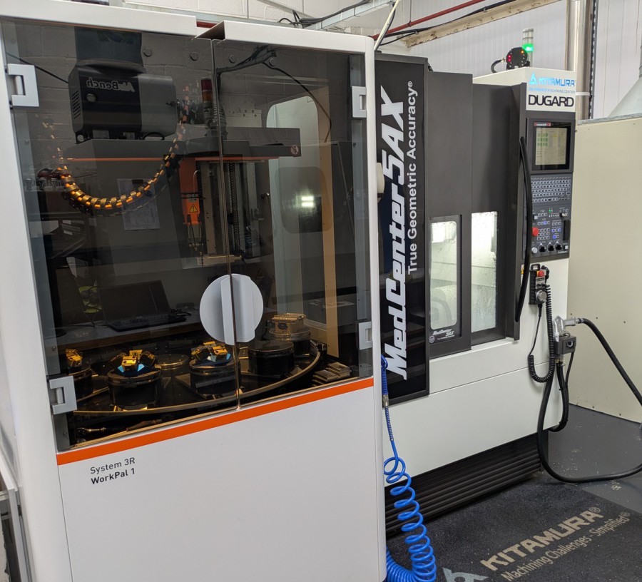 Kitamura are well kown for there high accuracy, and the medcenter5AX is no exception, with a positioning accuracy of ±0.001mm, Repeatability of ±0.0005mm30,000 rpm spindle, rapid speeds of 60m/min and a tool change in 1.5 seconds, complemented with a pallet changer it getting the job done fast and precise.